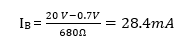 Arus dasar 28.4 mA mungkin akan merusak perangkat. Karena nilai resistor aktual sering